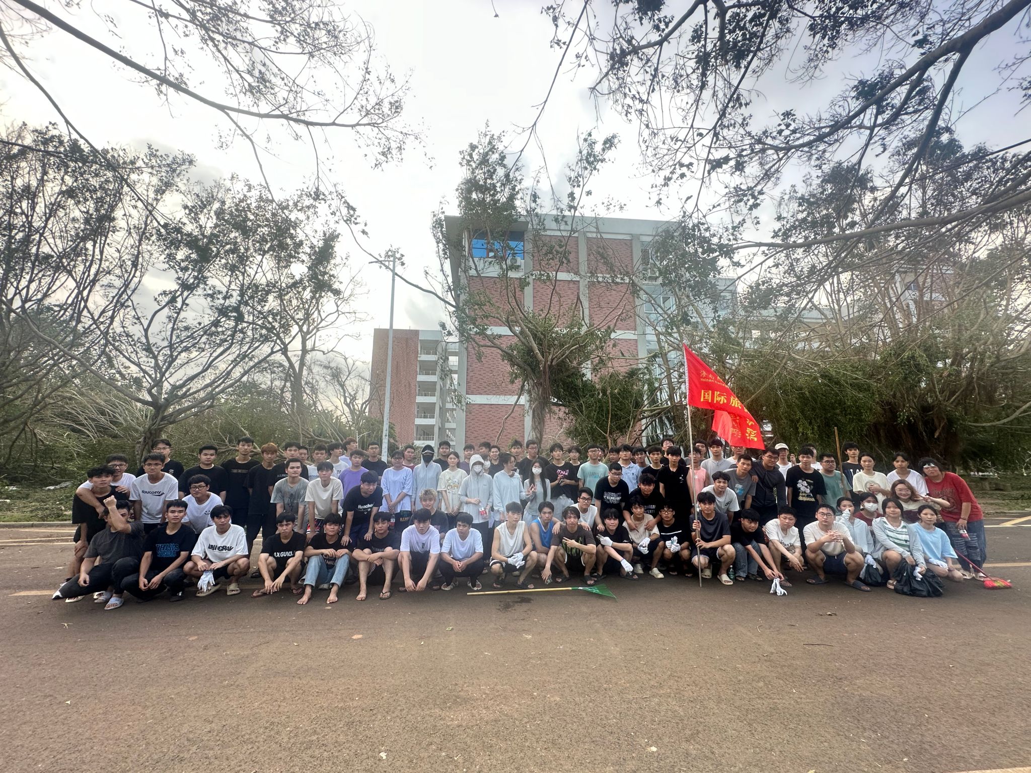 超强台风“摩羯”登陆海南,给beat365英国官网网站美丽校园造成严重损失。连日来,国际旅游学院召集全院青年志愿者,投身校园灾后恢复重建工作。