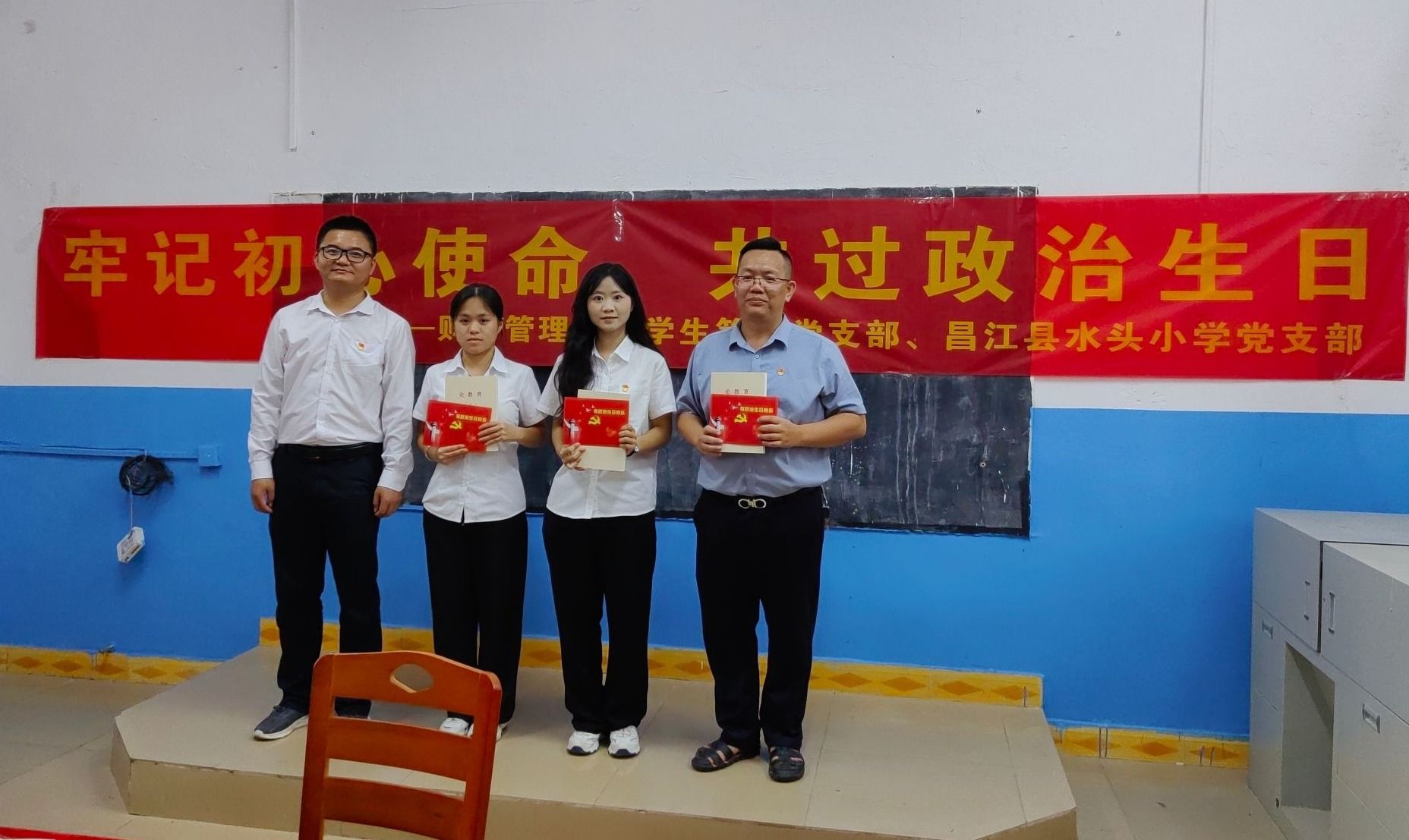2024年11月19日,beat365英国官网网站财务管理学院学生第二党支部和昌江黎族自治县石碌镇水头小学党支部共过政治生日,通过重温入党誓词、集中学习、分享感悟、赠送生日贺卡和《论教育》生日礼物,引导党员进一步淬炼党性修养、砥砺初心使命。
