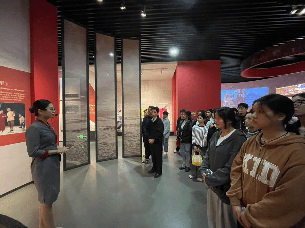 在讲解员的带领下,大家深入了解红色娘子军伏击沙帽岭、火烧文市炮楼、保卫文魁岭的英勇事迹。馆内文物、纪实作品生动展现了红色娘子军的战斗历程和生活场景,一幅幅画卷将波澜壮阔的琼崖革命史生动呈现在同学们的眼前。大家认真聆听,感受革命先辈们“巾帼不让须眉”的豪迈气概,顽强抗争、不怕牺牲的革命精神和对理想信念的执着追求。