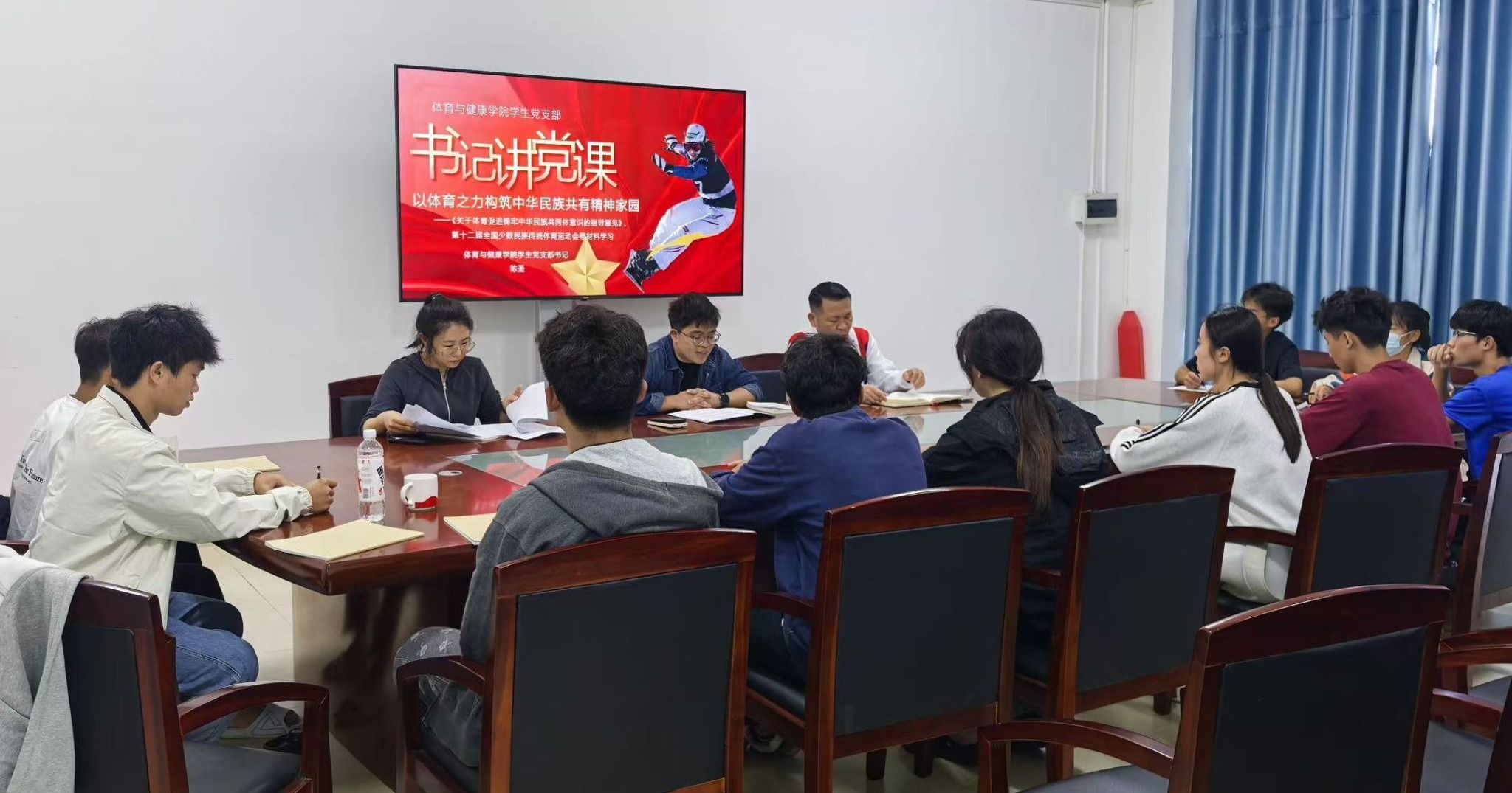 体育与健康学院学生党支部党员及入党积极分子参加党课学习。