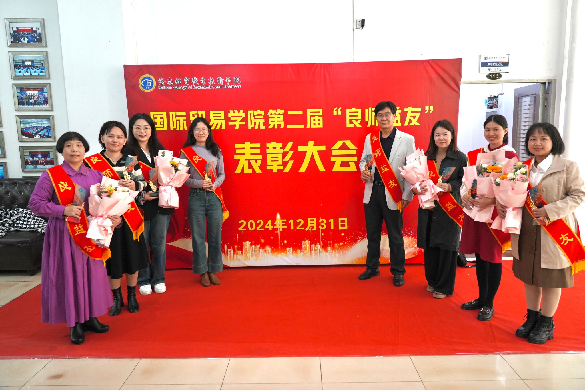 学高为师,德高为范。2024年12月31日,国际贸易学院举办师德师风建设暨第二届“良师益友”表彰大会,李晓欢、覃娜、尤一帆、王明严、林夏繁、周健、黄琳、何秀春和陈怡然9名老师获评学院第二届“良师益友”称号。