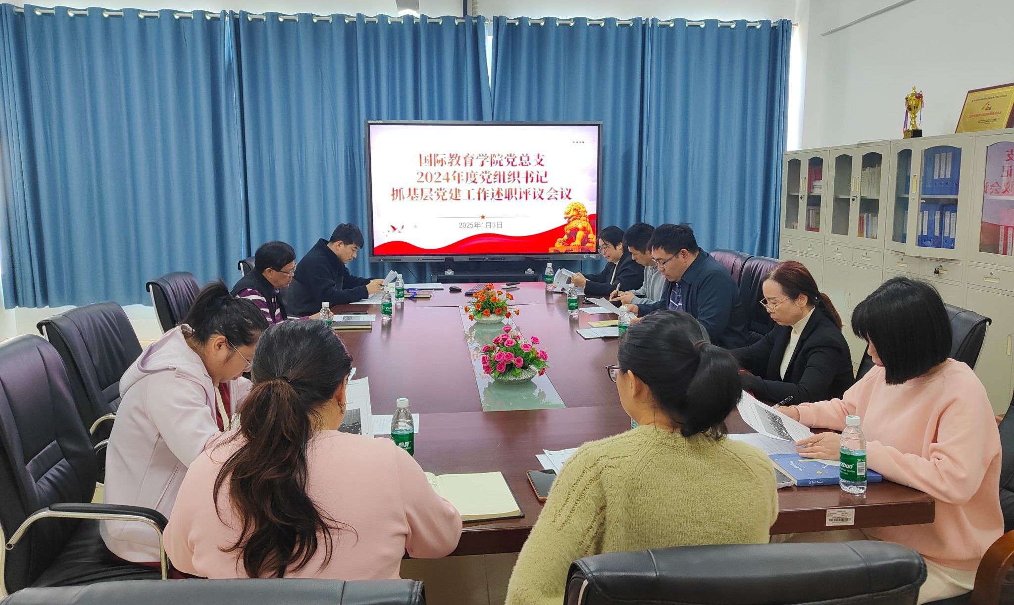 2025年1月3日,国际教育学院党总支召开2024年度党支部书记抓基层党建工作述职评议会。