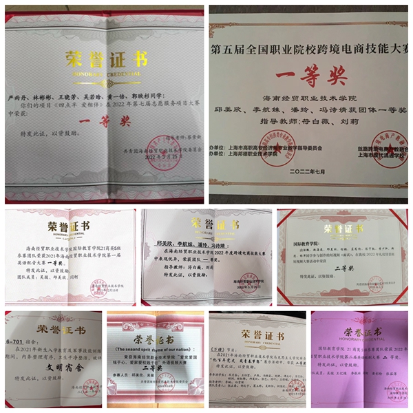 3名同学获学院奖学金,超过一半的同学考取职场英语“1+x”和英语四六级等证书、3名同学成为入党推优积极分子、10名同学成为校院两级学生会成员、在博鳌亚洲论坛年会、消博会、疫情防控等担任志愿者……