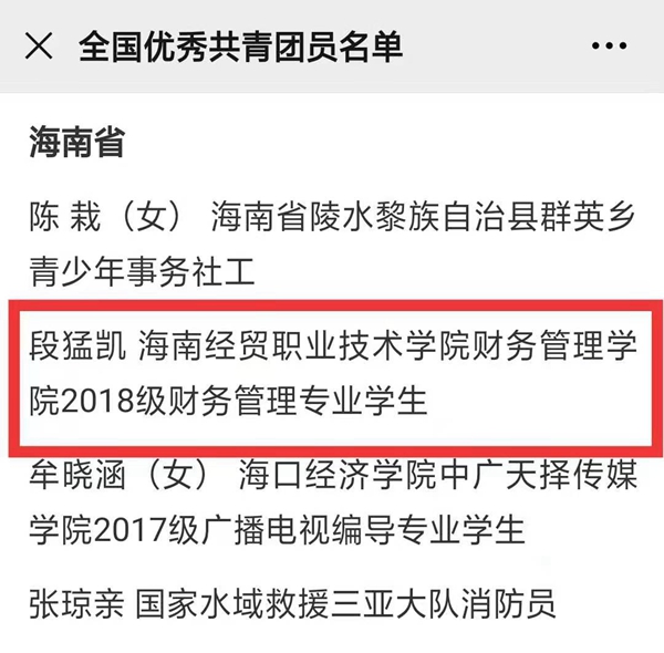 2021年五四青年节前夕,共青团中央表彰全国五四红旗团组织和优秀共青团员、共青团干部。beat365英国官网网站2018级财务管理专业学生段猛凯荣获“全国优秀共青团员”称号。