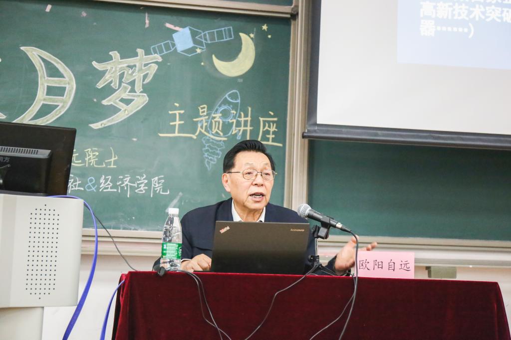 欧阳院士用幽默风趣的语言、引人入胜的叙事方法讲述了“中国的探月梦”,并语重心长地鼓舞学子们奋发图强,为实现中华民族伟大复兴、为人类社会的持续发展不懈努力。欧阳院士已是耄耋之年,仍坚持开展数次公益讲座,将所学知识毫无保留的进行传授,科学严谨,一丝不苟,这种对科学的尊崇与敬意,对社会的无私贡献,所体现出的工匠精神、爱国情怀,值得我们每位央财学子学习。