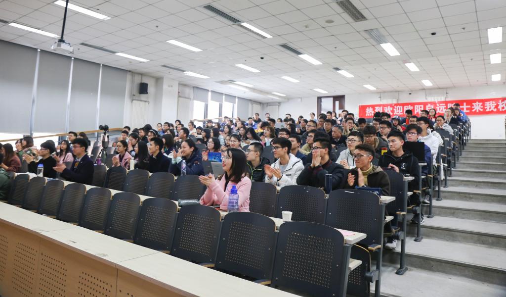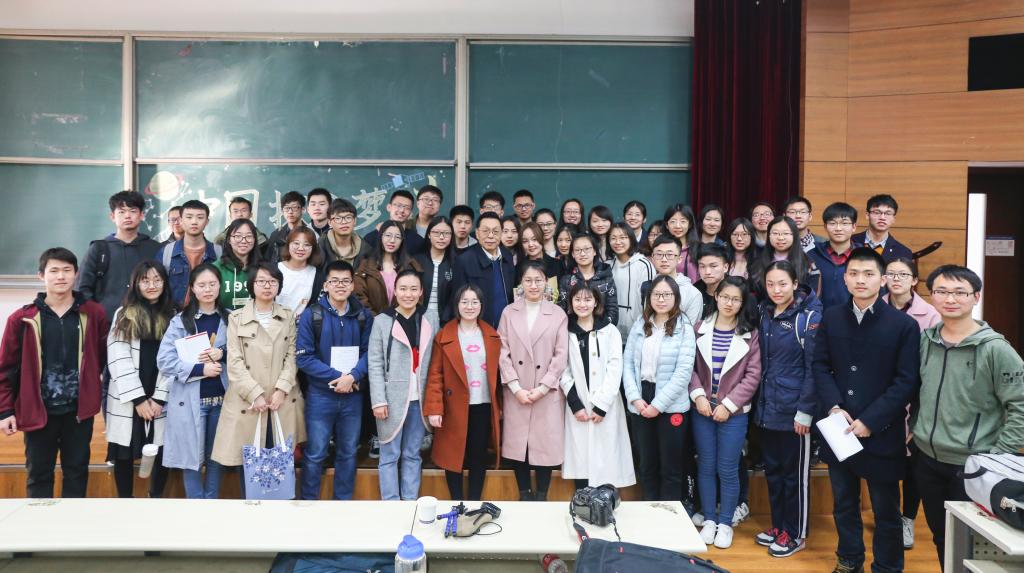 随后,院士向在场同学们详细介绍了中国的探月工程。在谈到中国为什么要开展探月工程时,院士讲到,探月工程是一个国家综合国力的体现,是提升国家地位的载体,是一个国家科学技术发展水平的重要标志。尽管联合国在1984年通过的《指导各国在月球和其他天体上活动的协定》中规定,月球及其自然资源是人类共同财产,任何国家、团体不得据为己有。但是,随着当前主要航天国家和组织正加紧实施月球探测计划,如何维护中国的空间利益已成为亟待关注的问题。月球上特有的能源、矿产以及特殊环境,都是对地球资源的重要补充和储备。我们只有开展月球探测并取得一定成果,才具有分享开发月球权益的实力,才能维护我国合法的月球权益。院士相信,中国的探月路将会坚定不移地走下去。