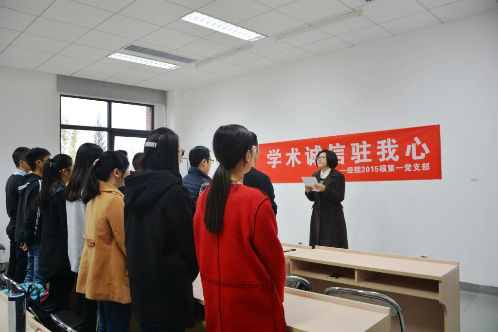 为铭记践行社会主义核心价值观—诚信,端正学术之风,开云kaiyun体育2015硕第一党支部开展了“学术诚信驻我心主题教育活动”。活动在开云kaiyun体育1号楼进行,开云kaiyun体育的任老师为同学们做了学术诚信的讲座,任老师用生动的例子为我们讲述了诚信的价值内涵,剖析了学术诚信应遵守的原则,活动的参与者进行积极的发言,讨论对学术诚信的认知,最后集体进行了学术诚信宣誓,并且在横幅上签名留念,活动取得了良好的效果,学术诚信驻进每位同学之心,人人都争当诚信的代言人。