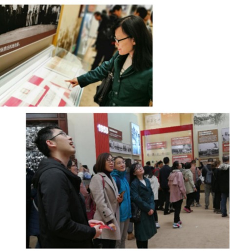 虽然秋雨蒙蒙,气温骤降,但党员们参观的热情丝毫不减。进入展厅,宛如穿梭于时空隧道,往昔与现实、血泪与梦想在空气中交织和升华。展览按照年代顺序,从1949年新中国成立,分年展出了70年来共和国和中国人民取得的光辉成就。从第一颗原子弹爆炸,到第一套广播体操推行;从第一部宪法制定,到第一次载人航天成功。每一项成就都是党领导中国人民克服艰难险阻,励精图治的累累硕果。而今,回望70年发展,更让大家深刻感受到了新中国成立70年以来的沧桑巨变。
