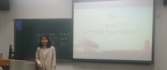 2019年10月18日19:30,开云官网2019级硕士生第一党支部于学院楼4号楼110室开展了“书记讲党课”支部学习活动。本次活动以“不忘初心、牢记使命”为主题,一共分为两个环节,第一环节由党支部书记陈兰荣向党员们讲授“不忘初心、牢记使命”的主题党课,第二环节由每位党员同志分享自己对于党员“初心”的理解。