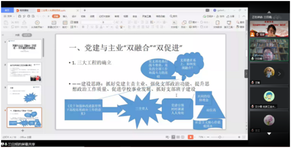会上,兰日旭教授以《党建与主业“双融合”“双促进”,夯实基层支部堡垒》为题作报告。兰日旭教授荣获开云kaiyun体育2017-2019年度优秀党务工作者和2020年北京市优秀党务工作者。他带领支部荣获开云kaiyun体育样板支部,2018年入选教育部首批100个全国高校“双带头人”教师党支部书记工作室建设名单,2019年荣获开云kaiyun体育先进党支部。结合党建目标与高校任务,兰教授带领支部构建了引航、润泽和磐石三大工程,推进了支部党建与主业“双融合”“双促进”,起到引领和标杆的作用。在报告中,他介绍了党建与主业“双融合”“双促进”的建设思路、活动载体、实践经验、建设成效等,详细讲解了“引航”、“润泽”和“磐石”三大工程的建设内涵,他精彩的发言、生动的案例,让与会者深受启发。