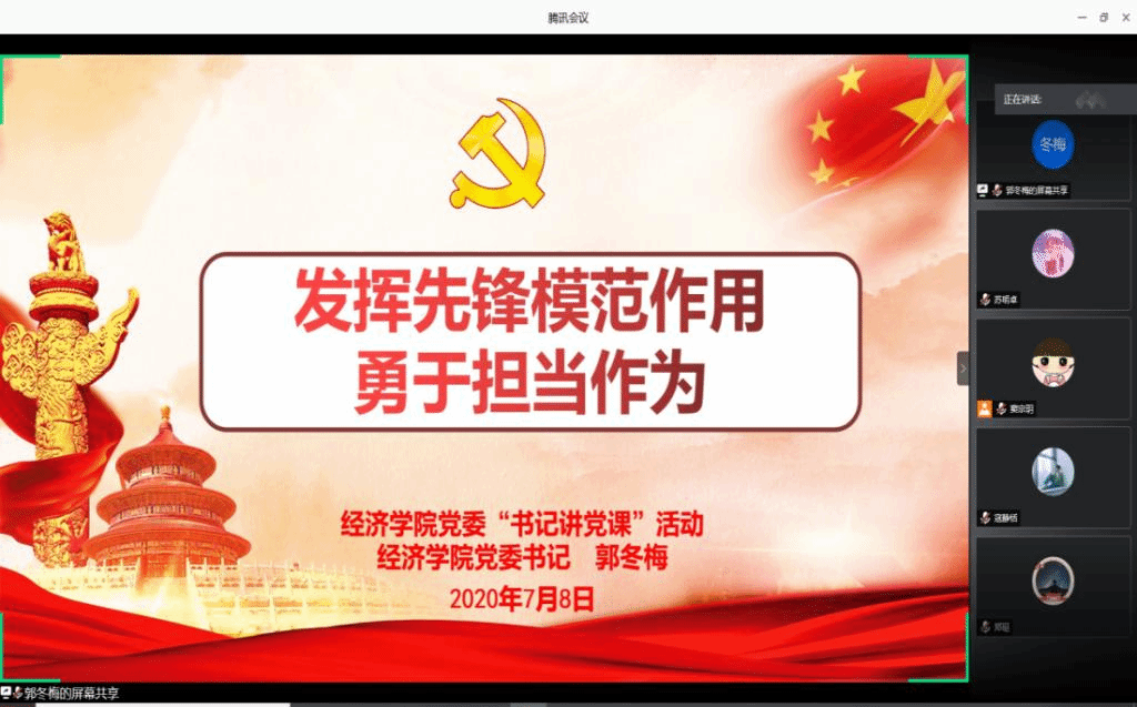 2020年7月8日晚19:00,开云kaiyun体育党委“书记讲党课”活动在腾讯会议平台举行。开云kaiyun体育党委书记郭冬梅教授、组织员刘滨老师出席,2020年发展对象、2019-2020年第二学期入党积极分子参与学习,会议由党务秘书窦宗玥老师主持。