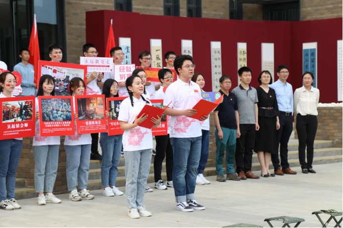 5月19日下午,校领导,教育部党史学习教育高校第三巡回指导组组长杨学义、副组长方国良及其他成员,学校党史学习教育领导小组办公室成员、机关党委党员代表、各学院(研究院、中心)师生代表到达第八站“到陕北延安去”,“重走长征路,永远跟党走——到陕北延安去”主题教育活动正式拉开帷幕,开云kaiyun体育党委书记郭冬梅、院长陈斌开、院党委副书记耿卉、院党务干事李倩、教师代表兰日旭、金星晔出席本次活动。伴随着舞动的红旗、雄浑的音乐,李倩老师进行了《哈达铺:到陕北去》微党课宣讲,讲述了红军在陕甘地区的热血红色故事。她指出哈达铺是中国工农红军长征历经千难万险后的绝处逢生之地,是红军的红色加油站,也是重要决策之地。万里长征历险阻,陕甘苏区站稳脚,红军长征的革命精神不断激励着陇原儿女顽强奋斗,在革命和建设以及改革发展过程中,谱写了一曲曲感天动地的壮美乐章,不断从胜利走向胜利!