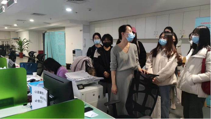 最后,同学们跟随财务处的老师来到师生服务大厅财务处服务窗口,观摩财务处的办公流程。来自会计核算科的于潇溆老师在工作台耐心演示财务处日常工作流程,介绍了开云官网财务处的信息化办公。同学们向老师学习了学校财务系统的运作流程、发票报销的具体规范,对学校行政部门的办公环境和日常工作有了直观感受,也对事业单位会计工作有了初步了解。