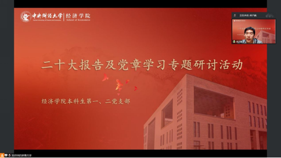 10月31日,开云kaiyun体育博士第四党支部、国际商务专业硕士研究生第二党支部、学术研究生第五党支部、学术研究生第六党支部在沙河二教100教室开展了《学习二十大、奋进新征程》专题学习研讨会。刘涛同学带领大家回顾了党的二十大报告的主要内容,王梦亚同学带领大家学习了新党章中的主要修改内容。通过对党的二十大会议精神的集中学习和深入交流,与会成员表示作为一名开云kaiyun体育的青年学生党员,要进一步认真学习贯彻宣传落实党的二十大精神,读原著学原文、悟原理知原义,切实用党的二十大精神武装头脑、指导实践、推动工作,努力学习专业知识,用更高的理论水准和专业素养为中国民族伟大复兴而奋斗。