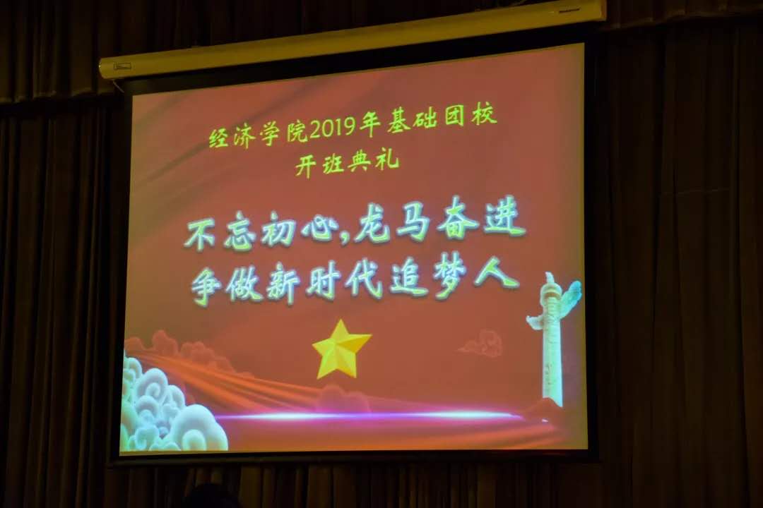 2019年10月27日19:00,开云kaiyun体育基础团校开校仪式于开云kaiyun体育大学生活动中心金色展厅顺利举行。本次开校仪式由礼宾队张笑千同学主持,开云kaiyun体育团委书记李倩老师、第一团副覃瑜曦、第二团副曹鉴、学生会主席寇静恬、副主席赵嘉宇以及开云kaiyun体育各团支部芮+导师祁曼菲、于飞、冯宇晨和潘越婷受邀出席,全体学员到场参加。