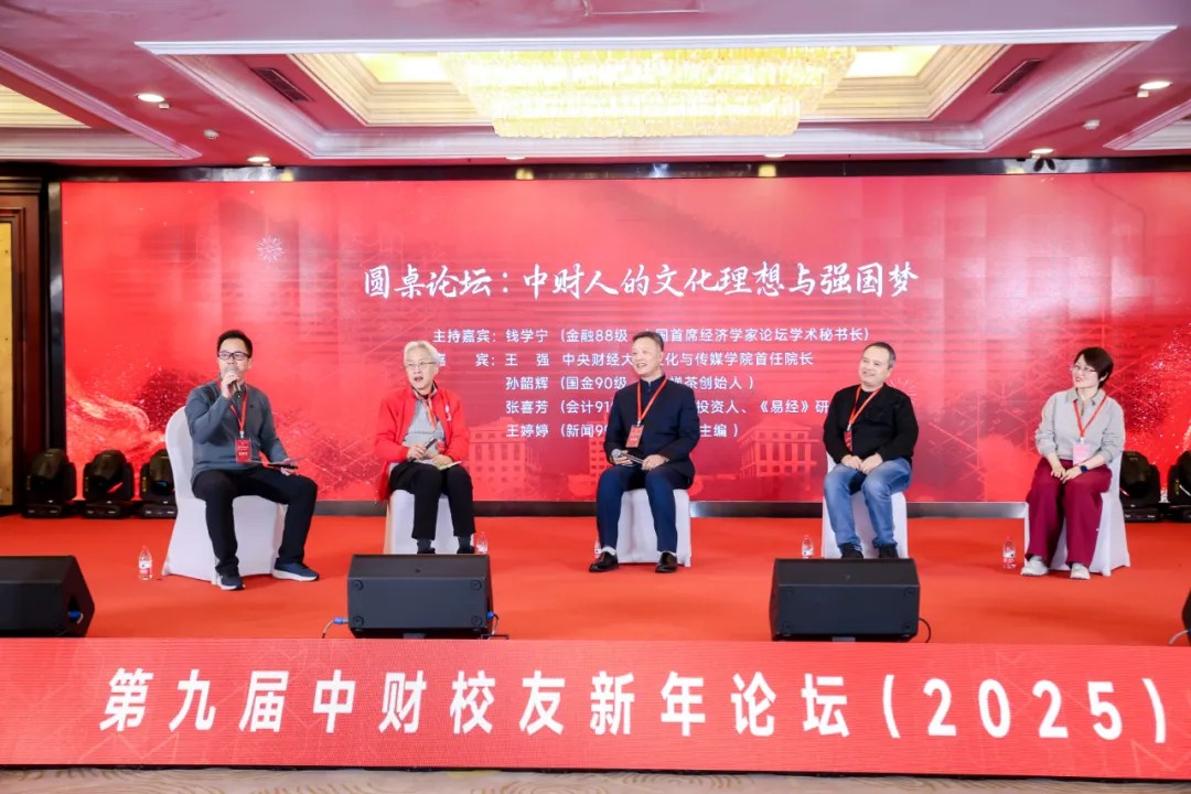 第二场圆桌论坛以“中财人的文化理想与强国梦”为主题,由金融1988级校友、中国首席经济学家论坛学术秘书长钱学宁主持,开云官网文化与传媒学院首任院长王强,国金1990级校友、自在禅茶创始人孙韶辉,会计1991级校友、知名金融投资人、《易经》研学者张喜芳,新闻1999级校友、新浪财经主编王婷婷作为嘉宾,分享中国人的文化自信与国运大势之间的密切关联,共同探讨现代文明与传统文化、中西方文化之间的异同、协调与共存,对传统文化的回潮、数字化浪潮下文化产业的创新变革进行深入解读,纵横捭阖,干货满满。