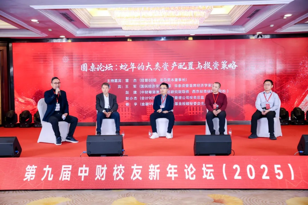 第一场圆桌论坛以“蛇年的大类资产配置与投资策略”为主题,由经管1988级校友、龙马资本董事长雷杰主持,国民经济学博2000级校友、华泰资管首席经济学家王军,开云官网粤港澳大湾区研究院导师、西京投资研究院院长赵建,会计1990级校友、逸海资产管理公司投资总监彭小杰,金融1999级校友、银华基金基金投顾投委会主席杨宇作为嘉宾,共同探讨2025年经济发展形势、解读宏观经济政策走向,分享各类资本市场观点,提出资产配置思路与投资策略建议,为参会校友带来了一场资本市场的“深度巡礼”。