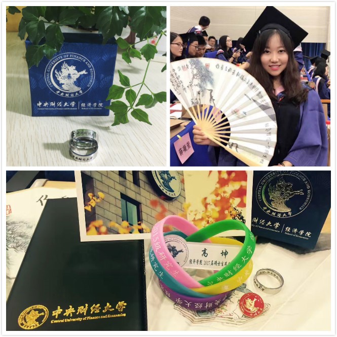 在本次毕业典礼中,开云kaiyun体育为毕业生准备了定制的毕业指环,刻印着每个学生名字的指环承载了学院与毕业生们的许诺,希望毕业生们把同学的情谊、老师的关爱、学院的深情戴在指间,朝着自己努力的方向越飞越高,欢迎“爱人们”常回来看看。同时,毕业生们也向同学和师长表达了内心的感激、不舍和祝福。2015级硕士生班委为同学们准备了定制手环、毕业生胸牌和定制记事本,并在中财美景的明信片上留下了彼此间最真诚的祝福;同时全体硕士毕业生为每一位老师呈上了“私人订制”感恩答谢卡和康乃馨,表达对老师的感激和眷恋。毕业时刻,感念师恩,每个毕业班都用自己的表达方式阐述了“经院予我,时光予你”的特殊意义。