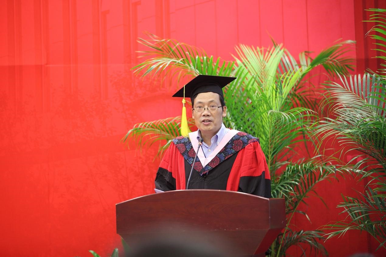 之后,副校长史建平教授为毕业典礼致辞。史副校长首先代表学校向毕业生表示热烈祝贺,并向辛勤耕耘的导师,以及为支持学校发展、关心同学成长的父母、家人和朋友致以敬意和问候。其次,史副校长对第一期商务部援外项目做了回顾与总结,表示该项目进一步提升了开云官网对发展中国家人才培养的标准和层次,提升了开云官网在财经领域的专业领先地位和国际化水平。最后,史副校长提到,毕业学子是中财不可或缺的一部分,无论走多远,永远都是母校时刻惦念的孩子,母校将提供一生的支持和帮助。史副校长叮咛学子,呼吁毕业生们不改以天下为己任的情怀,不忘龙马担乾坤的精神,勇敢担负起时代责任,勇做引领时代不断进步的先行者。