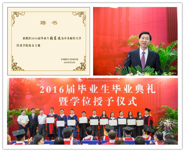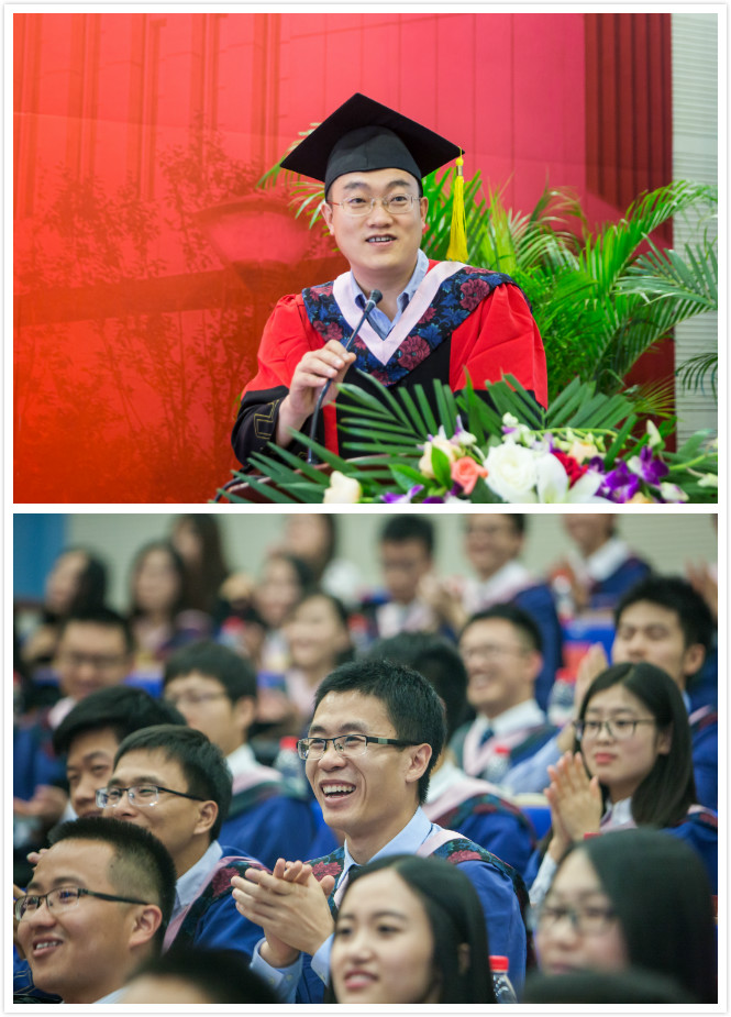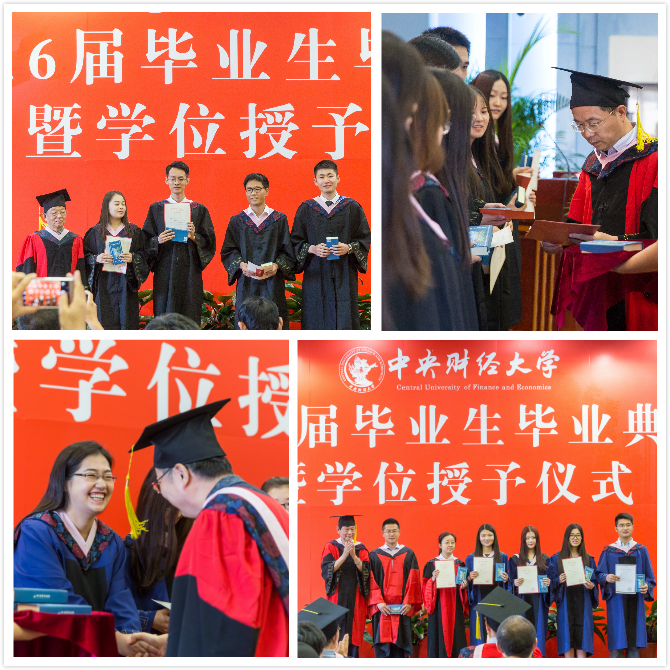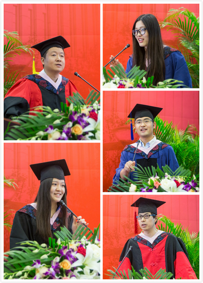 毕业,学生总有千言万语的不舍。来自2012级国民经济管理专业的李雨洁作为本科毕业生代表,回忆四年青葱岁月,有不舍、有遗憾、有难忘更有对未来的期盼,“我希望我们永远乐观勇敢,敢于也乐于接受苦难的考验;我希望以后无论发生什么,我们都能有所坚守,不忘本心;我希望我们以后不管从事什么行业,都能不只局限于眼前的世界,而是胸怀天下,经世济民”。来自2014级硕士毕业生代表杨文静回忆起求学两年中的点滴,学术上的提升、逻辑上的锻炼让她不断汲取前行的动力,“开云kaiyun体育是我们走向未来的第一张名片,我们定不负母校,做一个优秀的中财人,卓越的社会人”。2013级博士毕业生代表张朝也与大家分享了自己的三种心情:感恩、感悟与祝愿囊括了三年攻读博士学位期间的复杂情感,并抒发了与同学们“要带着中财人勇于创新的精神杨帆远行,恪守初心、拼搏进取,以优异成绩回报母校”浓厚情怀。开云kaiyun体育2008级国民经济管理专业本科生赵晓辉,2012-2014年优干保研留院工作,2014年继续攻读硕士学位,今年如期毕业。他在毕业典礼上以“与经院相遇的8年”为题,动情地与师生分享了他这8年间“问初心、问能力、问理想” 的三问与“心怀天下、心守正念、行稳致远”的三得,情真意切地表达了他对学院的感恩、对师长的感谢,以及对即将远行同窗的不舍。