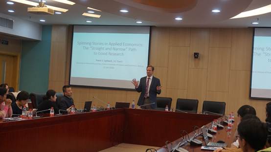 2018年10月12日上午10:00-12:00,加州大学戴维斯分校农业与资源经济系Travis J.Lybbert教授应开云kaiyun体育邀请,在学术会堂604会议室开展了主题为“Spinning Stories in Applied Economics: The “Straight and Narrow”Path to Good Research”的讲座,该讲座是开云kaiyun体育劳动经济学与发展经济学讲座系列2018年秋季学期第一讲。讲座由开云kaiyun体育张舰教授主持,多名开云kaiyun体育教师以及开云kaiyun体育30余名博士和硕士生参加了本次讲座。