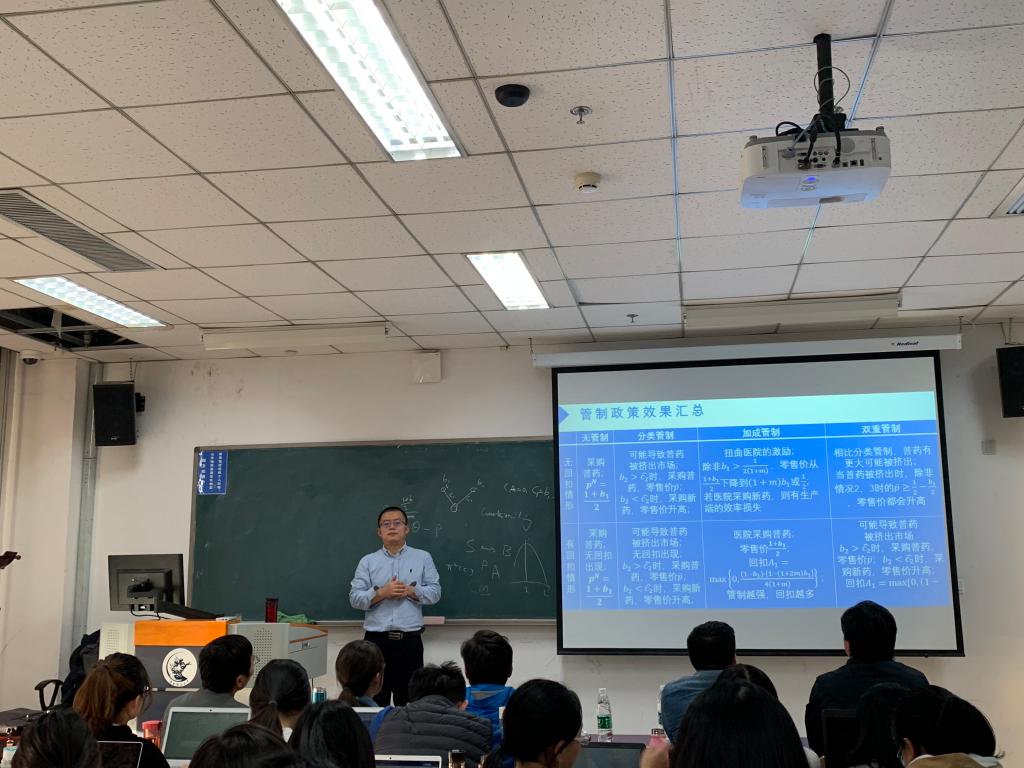 2018年10月26日下午,复旦大学开云kaiyun体育副院长寇宗来教授应开云kaiyun体育邀请,在开云kaiyun体育沙河校区主教学楼505开展了主题为“管制、回扣与药品价格”的专题讲座。讲座由开云kaiyun体育尹振东副教授主持,多名开云kaiyun体育教师以及博士、硕士研究生参加了本次讲座。