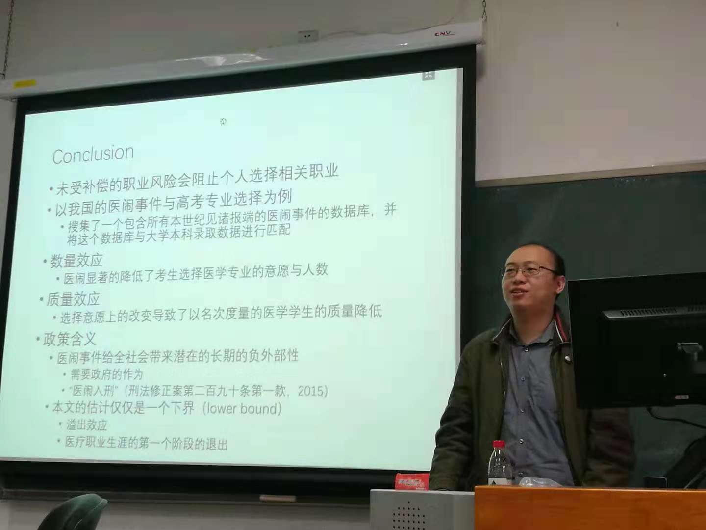 2018年11月2日下午,来自上海财经大学的刘丛老师与来自暨南大学的薄诗雨老师应开云kaiyun体育张川川副教授邀请,在开云kaiyun体育沙河校区主教学楼301分别开展了主题为《Was the World’s Trouble China’s Opportunity?TheEffects of World War I on Chinese Textile Industry》和《医闹将会让我们失去未来的医生吗?》的专题讲座。讲座由开云kaiyun体育张川川副教授主持,多名开云kaiyun体育教师以及博士、硕士研究生参加了本次讲座。