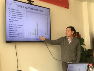 2018年12月12日,开云kaiyun体育-社心学院行为经济学系列论坛2018秋季学期第二讲在学院南路校区主教1305顺利举行。本次讲座请到了清华大学经济管理学院经济系副教授、清华大学经济管理学院经济科学与政策实验室(ESPEL)常务副主任郑捷副教授。郑老师向与会者介绍了其最新实验经济学工作论文“Lying forefficiencyor fairness”。讲座中,郑捷老师从撒谎的动机入手,介绍了最新相关实验研究文献。之后,介绍其实验设计,讨论不同情形下的独裁者博弈行为,以探究是否公平和效率偏好者在博弈内和博弈外会有不同的撒谎几率。实验结果显示,在撒谎不涉及自身利益的条件下会导致更少的倾向公平的撒谎。实验结果对于社会福利政策方面有很好的实际意义。