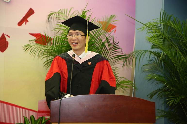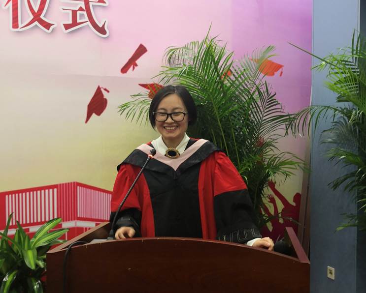 教师代表致辞环节中,赵丽芬教授首先祝贺毕业生们,读书学习是艰辛的过程,同学们经历多年时光后系统掌握了知识的同时拓宽了自己的视野,同时对培养这些学生的家长和老师们致以崇高的敬意;其次感谢老师们对教师职业的执着与热爱、“2+5”、“白+黑”的付出,并且感谢同学们对老师的理解与爱;最后祝福同学们,希望同学们牢记“勤奋、执着、担当、诚信”8个字,“勤恳做事、踏实做人”,处理好“工作与生活、事业与家庭、拼搏与健康”的平衡,祝福毕业生家人们身体健康、生活幸福。青年教师代表徐翔副教授致辞中,以“记忆”为主题寄语毕业生,回忆自己当年的博士毕业典礼,表示十分理解毕业生们对未来的期待、对身份转换的迷惘、对同学情谊的不舍;随后追忆开云kaiyun体育的发展历史,从经济系到开云kaiyun体育发展壮大的心路历程;以及追溯经济学的发展之路,号召毕业生们作为经济学科的传人,在汲取专业知识和老师们的人生经验后,应秉承“经世济民”的精神,为国家和社会做出贡献。