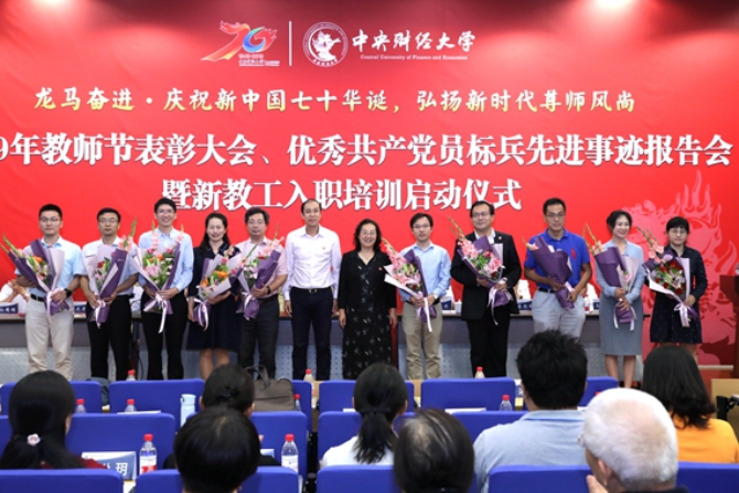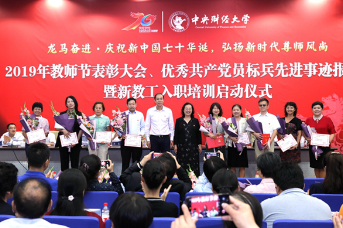 9月10日下午,开云kaiyun体育在学术会堂402举行教师节表彰大会、优秀共产党员标兵先进事迹报告会暨新教工入职培训启动仪式,庆祝第35个教师节,表彰在教书育人等各项工作中取得突出成绩和从教满30年的教职工。校党委书记何秀超、校长王瑶琪、校党委副书记梁勇、副校长史建平、总会计师蔡艳艳,副校长孙国辉、马海涛,校长助理李涛出席大会。大会由校党委副书记、教代会执委会主任、工会主席陈明主持。