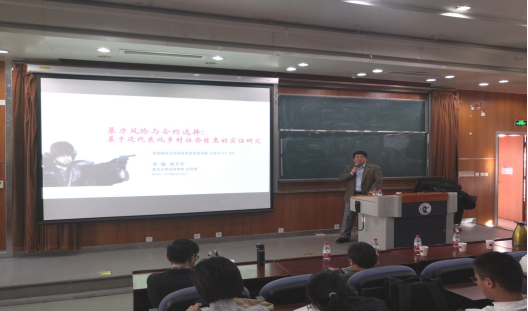 2019年12月11日,复旦大学经济学系李楠教授应开云kaiyun体育邀请,在开云kaiyun体育沙河校区3号楼222教室开展了主题为“暴力风险与合约选择——基于近代东北乡村社会匪患的考察”的讲座,本次讲座由开云kaiyun体育兰日旭教授主持,开云官网多名教师、博士和硕士研究生参加了讲座。
