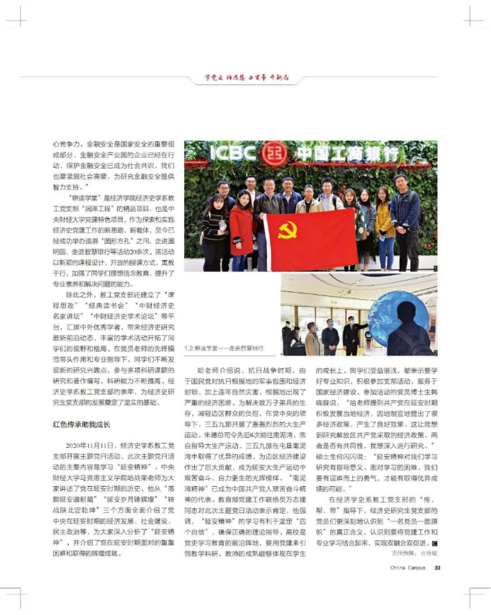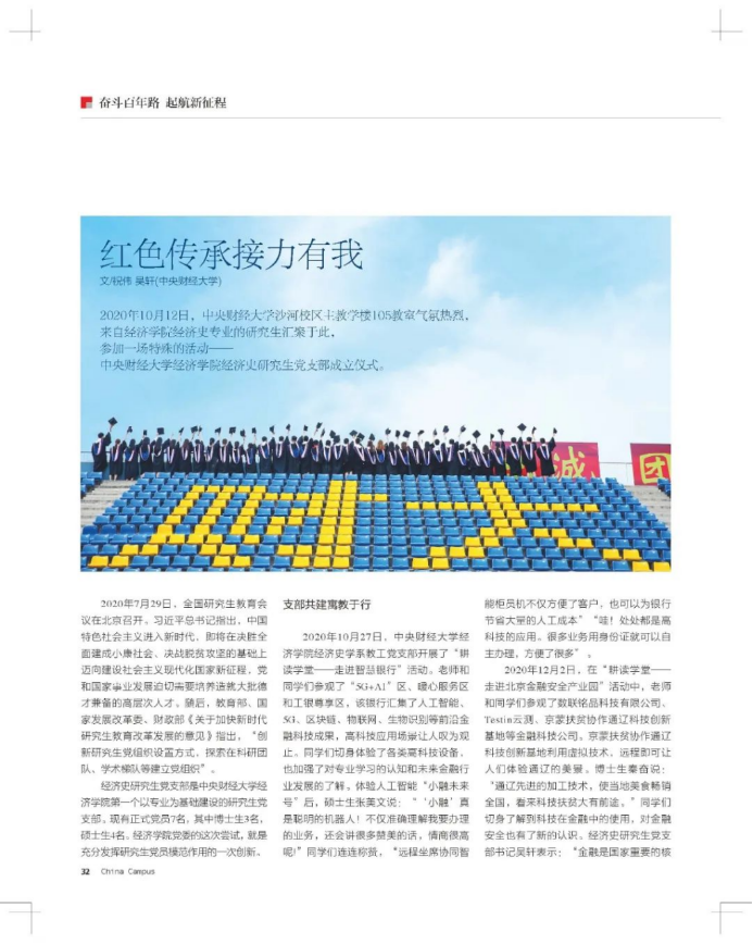《大学生》杂志第316期以“红色传承接力有我”为题,报道了开云官网经济史研究生党支部。现将全文转载如下。