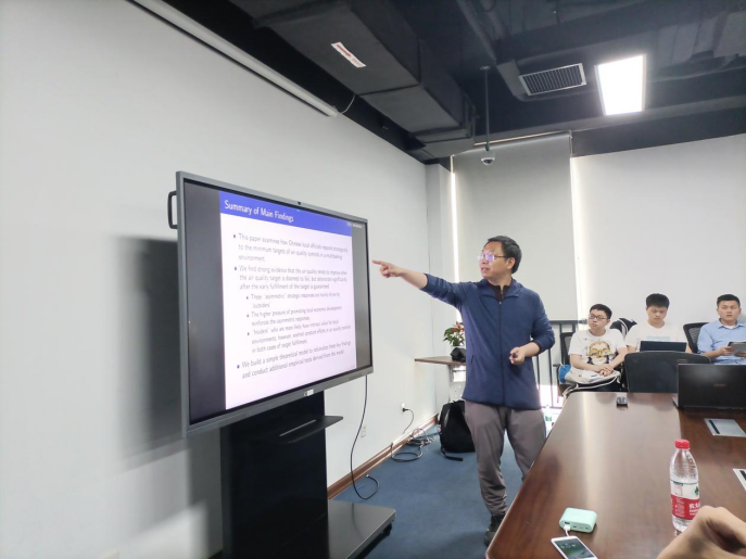 本次讲座,翁翕教授探讨了在多任务环境下,中国地方官员如何对空气质量控制的最低目标做出策略性反应,因为这与他们的晋升前景密切相关。翁翕教授利用了我国311个城市2015-2019年的空气质量数据,采用断点回归(RD)的方法实证分析了地方官员在空气质量最低目标要求下的行为变化。他发现当空气质量目标注定要失败时,地方官员会有较大的环保督察压力,使得他们对环保的态度更加积极,因此空气质量往往会得到改善;但在提前实现目标后,地方官员为了促进地方经济的增长,往往会放松对污染排放的监管,因此空气质量会显著恶化。这些“不对称”的策略反应主要是由“局外人”驱动的,这些“局外人”即以前没有任职过现在他们所负责地区的地方官员。当推动地方经济发展的压力加大时,会加剧“局外人”的“不对称反应”。而对于从本地晋升的官员,更有可能重视当地环境,因此空气质量的变化在上述两种情况下都是稳定的。随后,翁翕教授建立了一个简单的理论模型来合理地解释这些重要发现。