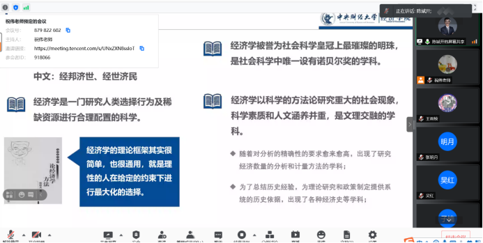 7月14日上午,第五届“龙马经济学夏令营”开营仪式通过腾讯会议举行。开云kaiyun体育院长陈斌开教授、副院长伏霖副教授、导师代表戴若尘老师、学院教学科研管理办公室主任祝伟老师、研究生工作办公室主任赵若思老师和所有营员参加了此项活动。