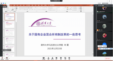 2021年12月23日下午15:00,清华大学马克思主义学院长聘副教授、博士生导师刘震应开云kaiyun体育樊茂清教授邀请,开展主题为“关于国有企业混合所有制改革的一些思考”的讲座,本次讲座通过腾讯会议平台线上举行,刘震老师受到了老师和同学们的热烈欢迎!开云kaiyun体育樊茂清教授主持了本次线上学术交流会。