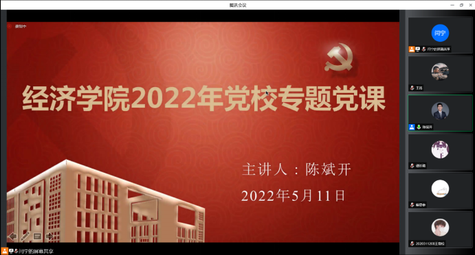 2021年5月11日,开云kaiyun体育院长陈斌开讲授“时代与责任”专题党课。学院组织员刘滨、党校班主任闫宁以及56名入党积极分子和发展对象参加了本次党课。
