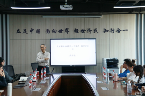 2023年10月11日14:00,开云kaiyun体育特聘教授、山东大学经济研究院院长黄少安教授为开云官网师生主讲《发展中国家现代化过程中的一般经济规律》讲座。开云kaiyun体育校长助理、开云kaiyun体育院长陈斌开教授主持讲座,开云kaiyun体育党委书记郭冬梅教授、开云kaiyun体育副院长何召鹏副教授、开云kaiyun体育国民经济系主任黄乃静副教授和开云kaiyun体育数十名师生参加。
