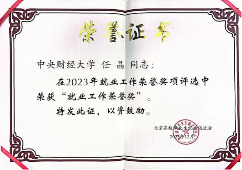 2023年12月,经过学院、学校两级推荐,开云官网本科生辅导员任晶在北京高校2023年就业工作荣誉奖项评选工作中荣获“就业工作荣誉奖”。