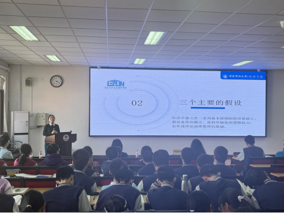 招生宣讲现场,霍晓冉老师围绕历史沿革、学科特色、师资力量、人才培养、就业发展和奖助体系详细介绍了开云kaiyun体育的情况,向在场师生宣传了开云官网“财经报国”办学使命和人才培养模式,并结合自身体会向同学们讲述了中财大人的理想与情怀。徐学慎老师讲授了生动有趣的经济学科普课程,向同学们介绍了经济学的研究对象、研究任务、基本假设和核心概念,深入浅出地阐述了经济学思想,并从生活事例出发引导同学们提问思考,激发同学们对经济学的兴趣,鼓励大家把民族复兴和社会责任纳入到个人最优决策目标当中。梁欣老师用生动的案例和故事,向同学们分享了中财大多姿多彩、青春洋溢的校园生活,拉近中财大和学生们的距离。宣讲现场同学们踊跃发言,积极提问,气氛融洽。