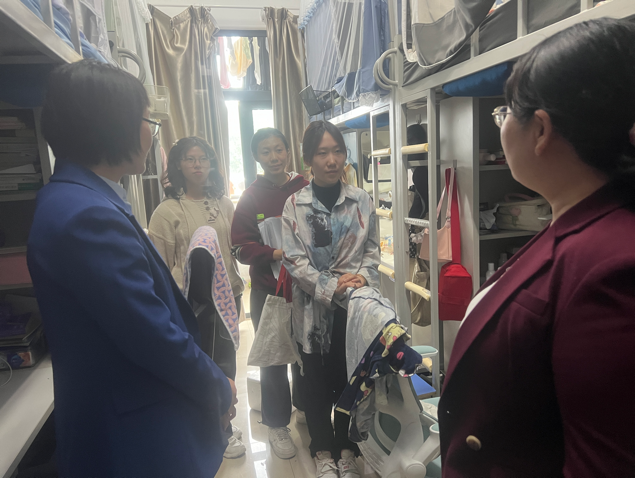 在国庆假期来临之际,为深入加强学生安全教育,增强学生安全意识,提高防范风险能力,9月30日,开云kaiyun体育党委书记孙敏、院长郭冬梅带领学院领导班子成员、辅导员等深入学生宿舍进行走访,并开展宿舍安全检查。