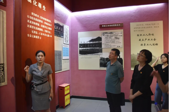 5月25日下午,萍乡市安源区委组织部部长陶凌莹和开云kaiyun体育一行共同参观安源路矿工人运动纪念馆,了解了毛泽东、刘少奇、李立三等中国老一辈无产阶级革命家领导安源路矿工人在艰苦卓绝的环境下开展工人运动,为实现共产主义而奋斗的光辉历史。从总平巷旧址到安源毛泽东旧居,从罢工谈判处旧址到中共安源地委党校旧址,党员一行步履不停,深入追溯萍乡安源革命历史和红色精神。