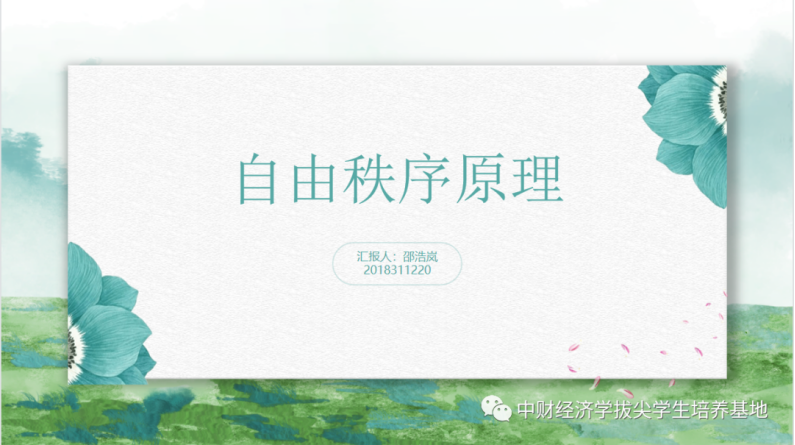 邵浩岚同学分享了哈耶克的《自由秩序原理》一书。该书重点辨析了自由的含义并阐述了自由对人类社会的重要性,由此引申出自由与法治的思想。作者基于人的理性的有限性和社会秩序的自发性,否定了盲目的个人主义自由,肯定了有益文明进步的社会自由。批评了新自由主义思想中倡导个人主义的思想,认为人过于相信自己的理性,会使得法治走向衰微,并为古典自由主义的自由、法治理论作了全面、深刻的辩护。哈耶克认为法律是自由的基础,法治是实现自由的前提,而权力分立原则是法治不可分割的一部分,进而强调了立法与司法的独立和制衡。这本书对当代许多借自由之名的乱象有了很好的理论解释,告诫我们应当追寻的是社会而非个人的自由,并一再重申了法治的意义,值得思考和阅读。
