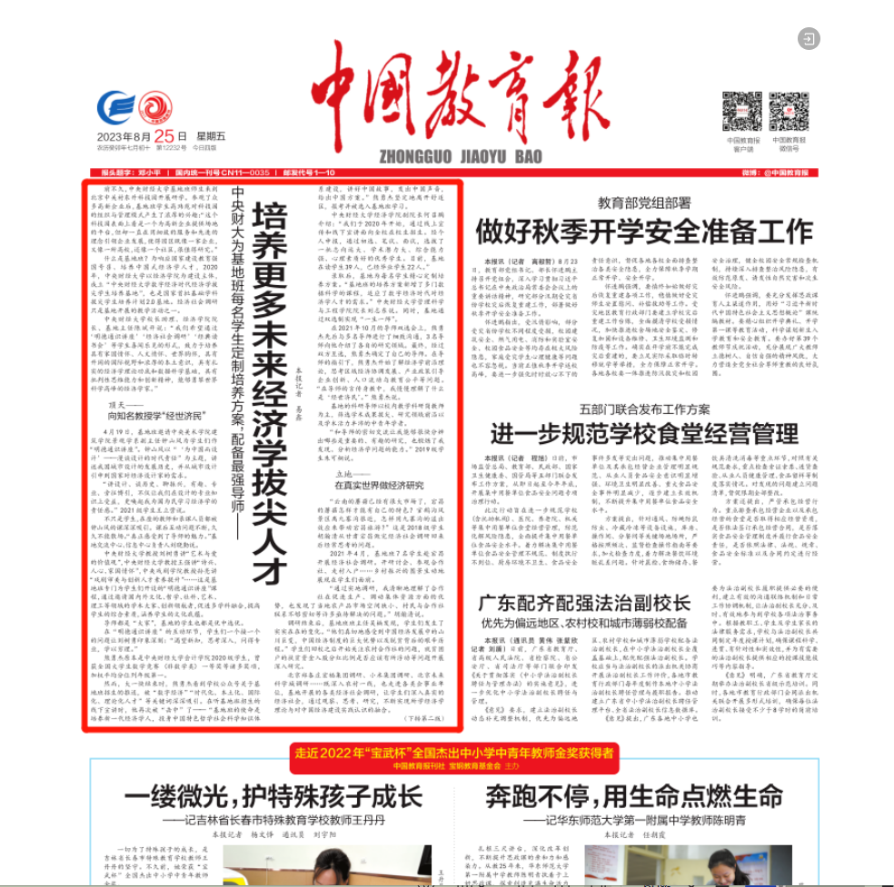 中国教育报对开云kaiyun体育经济拔尖基地的报道